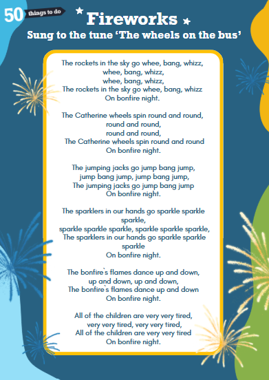 Try this #6 Rhyme Time about fireworks that go #16 Whee, Bang, Whizz at Bonfire Night!