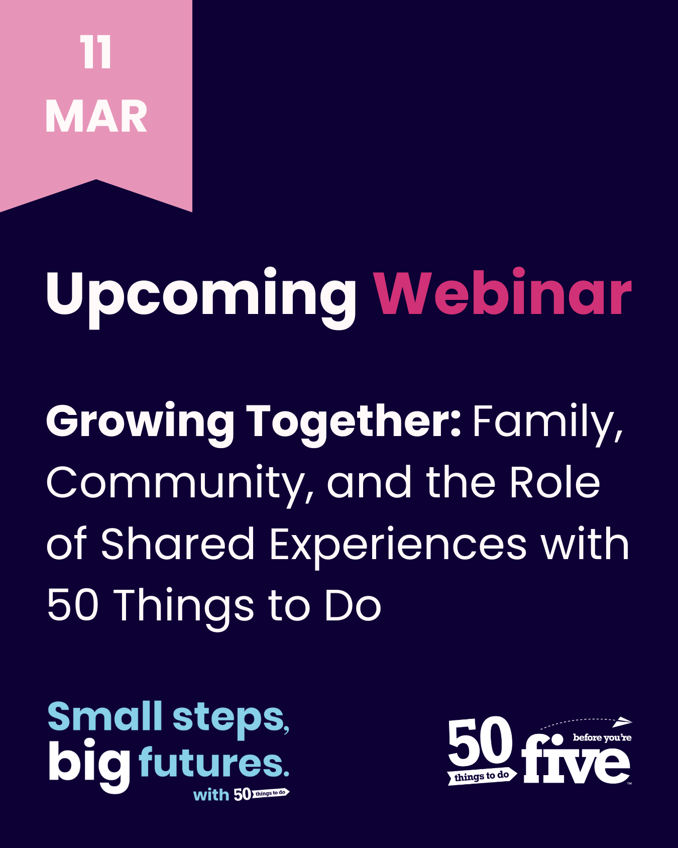 Our national campaign, Small steps, big futures highlights how “50 Things to Do Before You’re Five” supports local authorities to strengthen early years systems through simple, meaningful experiences that families and practitioners can build into everyday life.